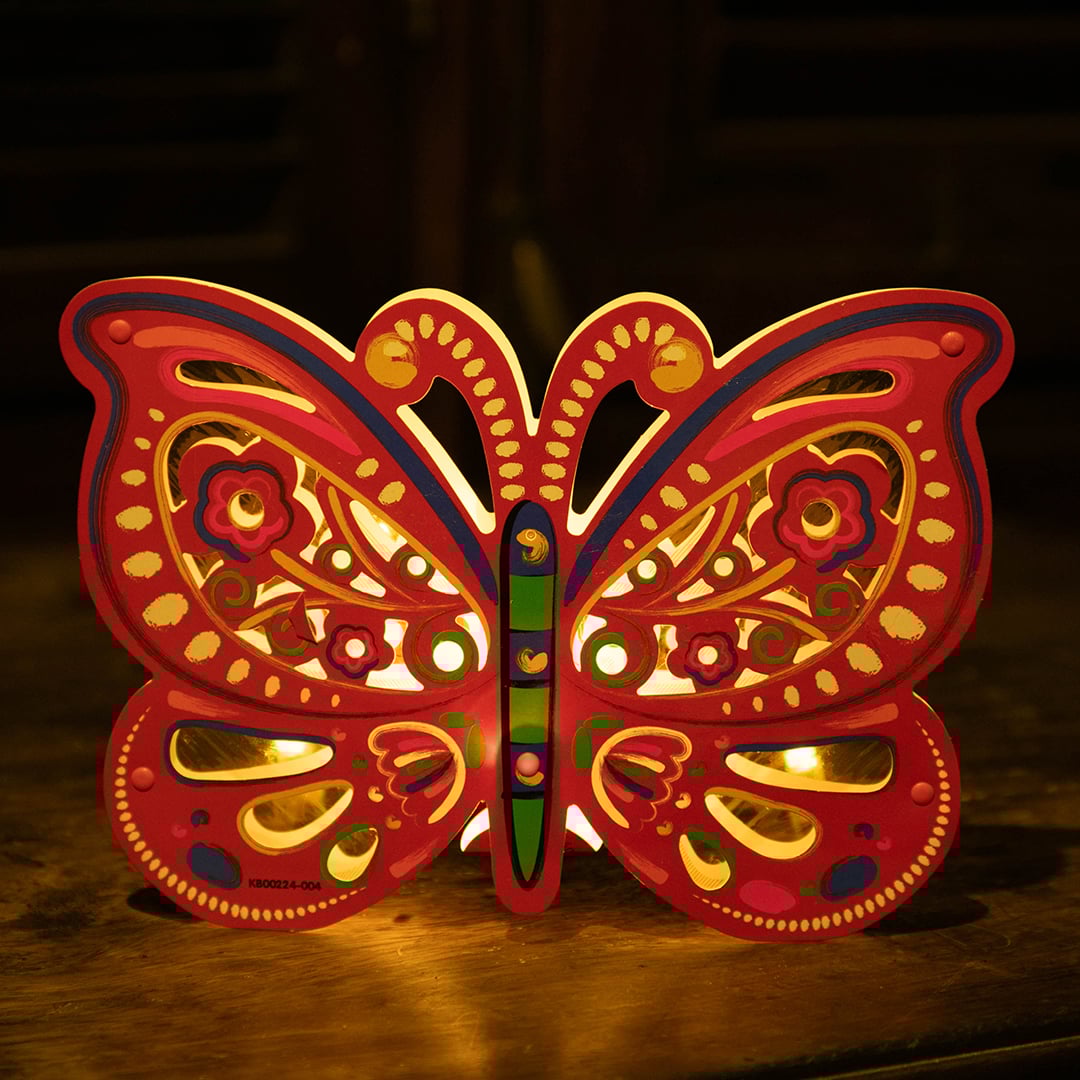 Lồng đèn Trung Thu - Lồng đèn trang trí "Ký ức tuổi thơ" hình Bướm tái hiện lại hình ảnh đặc trưng của Tết Trung Thu xưa Lung linh nhất về trung thu xưa có lẽ lại gắn liền với những chiếc lồng đèn trung thu nhiều kiểu dáng, mộc mạc nhưng không kém phần rực rỡ. Ánh sáng nhỏ bé ấy không chỉ tô điểm cho bầu không khí đoàn viên thêm ấm cúng, mà còn là ngọn lửa thắp sáng bao ước mơ, hy vọng và là nhân chứng chứng kiến bao niềm vui nỗi buồn của các thành viên trong gia đình.