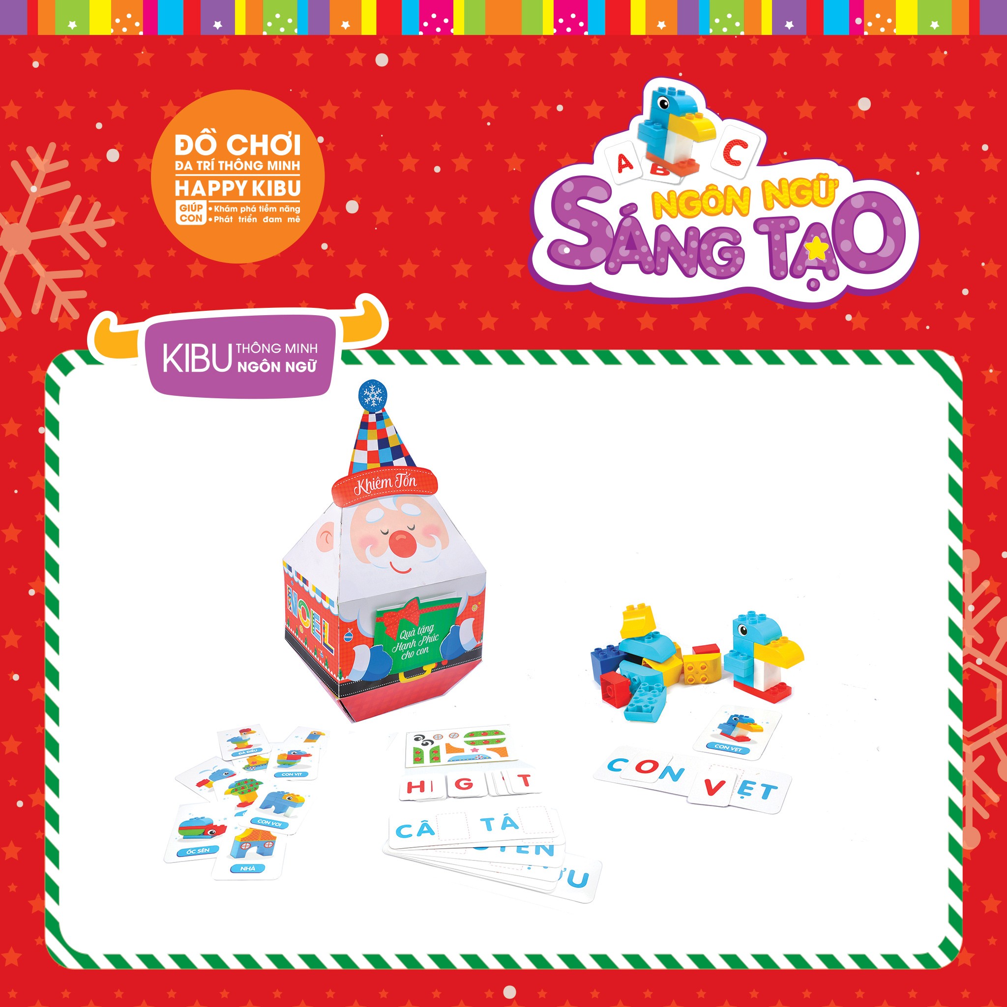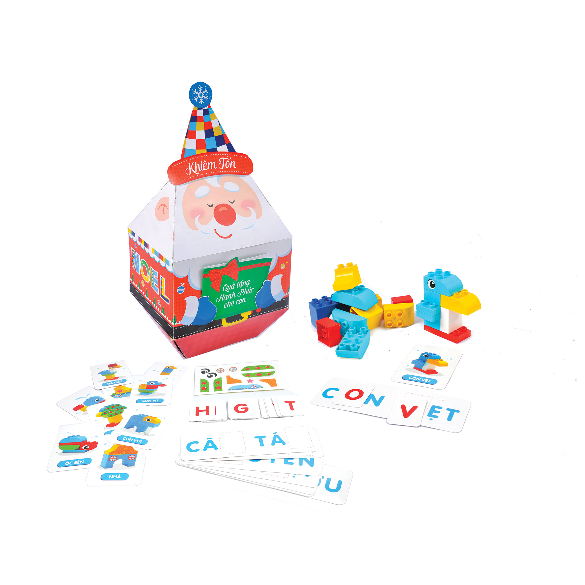 Thẻ lắp ráp, thẻ chữ cái Tiếng Việt, Khối lắp ráp đa màu sắc, Ông Noel Khiêm Tốn, Thiệp giáng sinh.