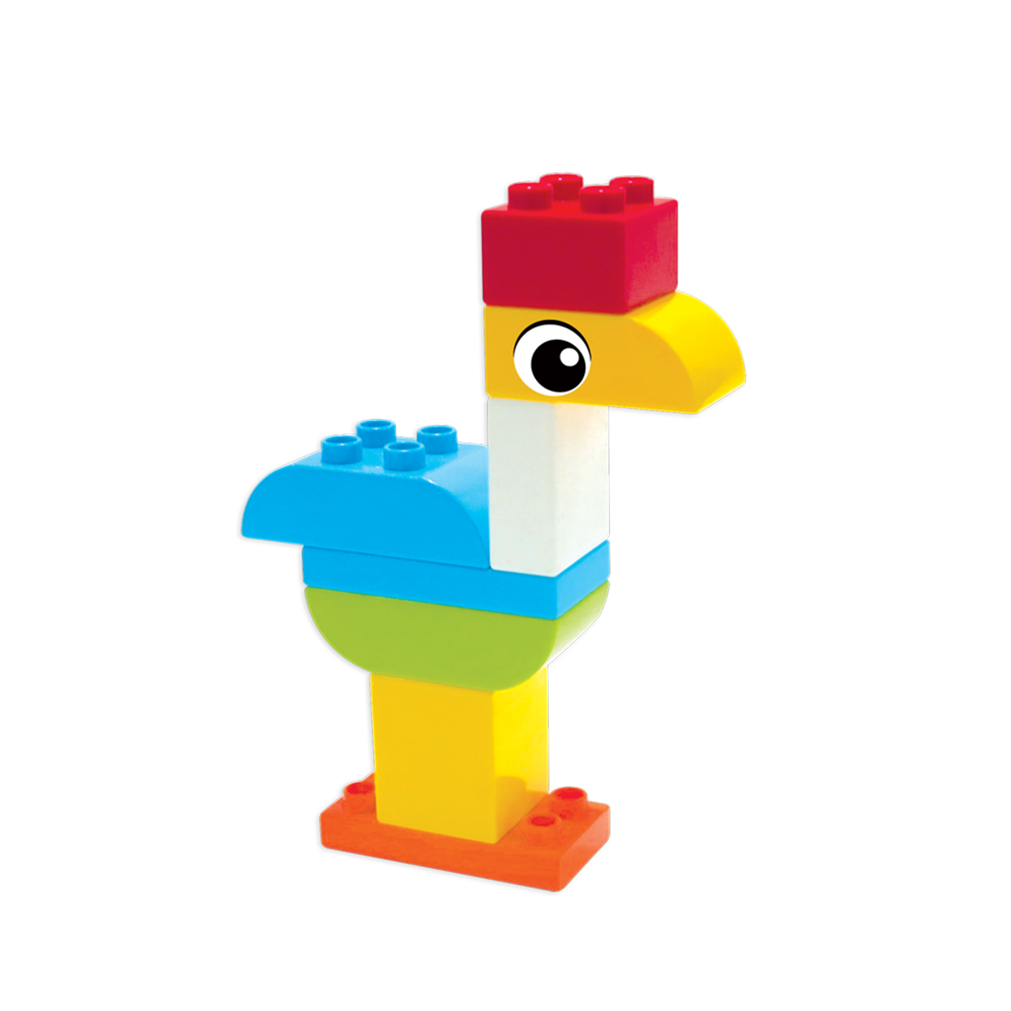 + Con lắp ghép 15 khối lắp ghép đa màu thành hình các con vật theo hướng dẫn trên thẻ lắp ráp.