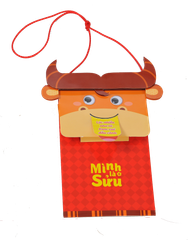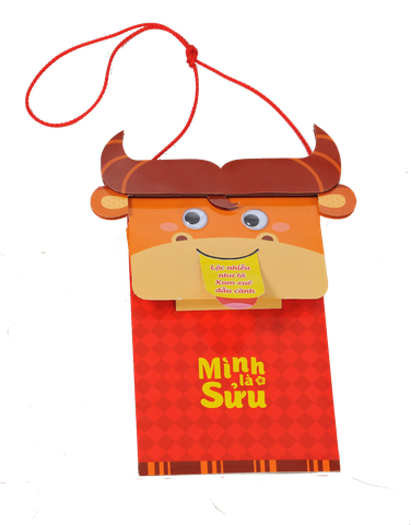 Cách sử dụng: kéo lưỡi để thấy lời chúc Tết, đựng tiền lì xì, có dây đeo cho bé